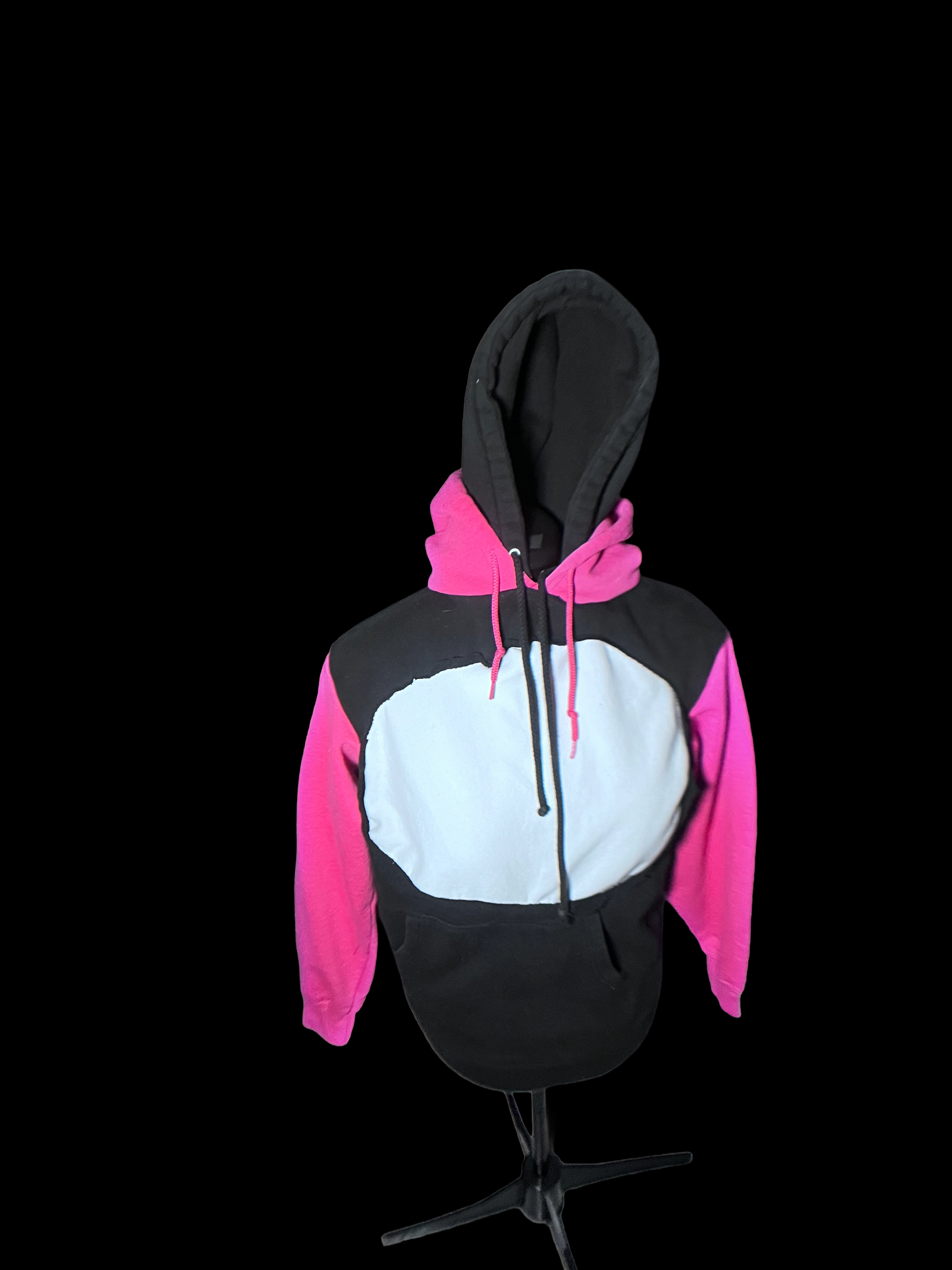 Pink and black ripped Double hooded hoodie
